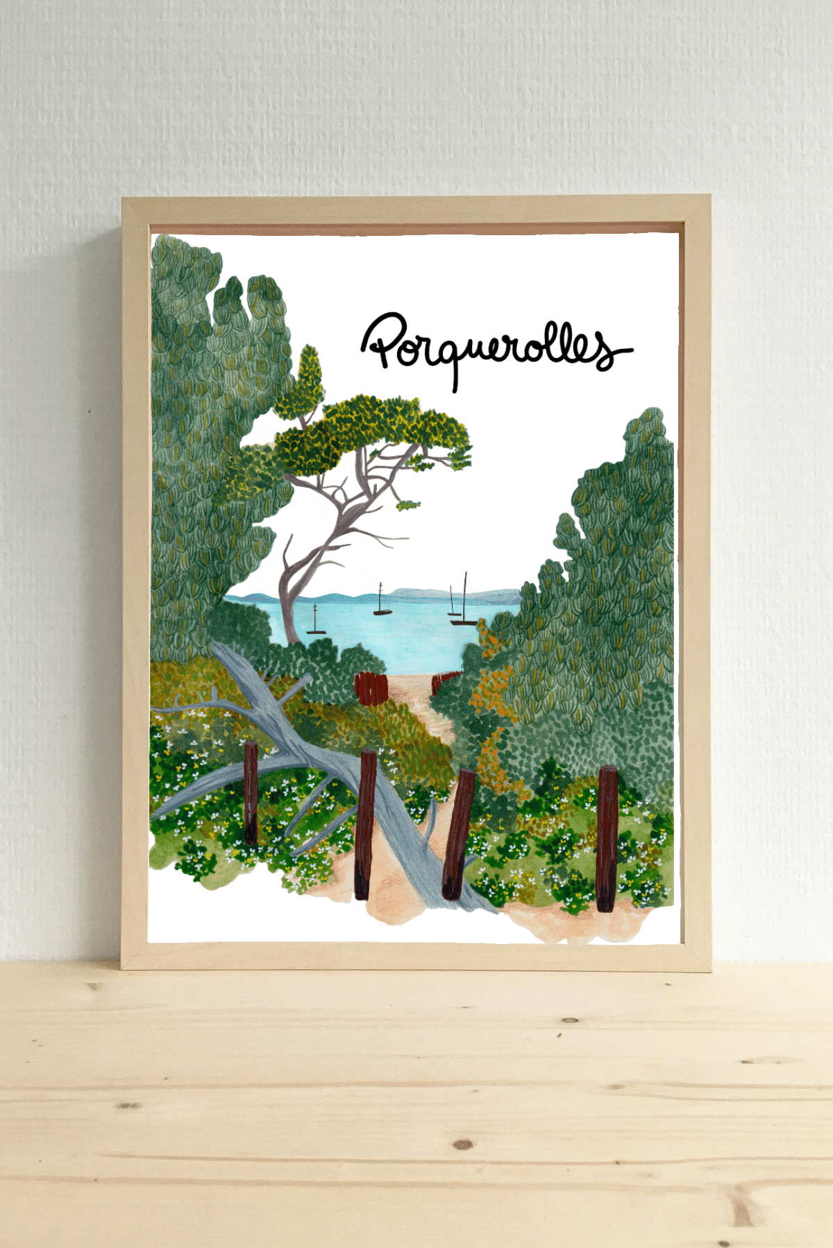 Tirage format A5 (14,8x21cm), A4 (21x29,7cm) ou A3 (29,7x42cm) de mon illustration originale de Porquerolles (Hyères, Var), imprimée sur papier d'art 300Gr, signée et numérotée.
