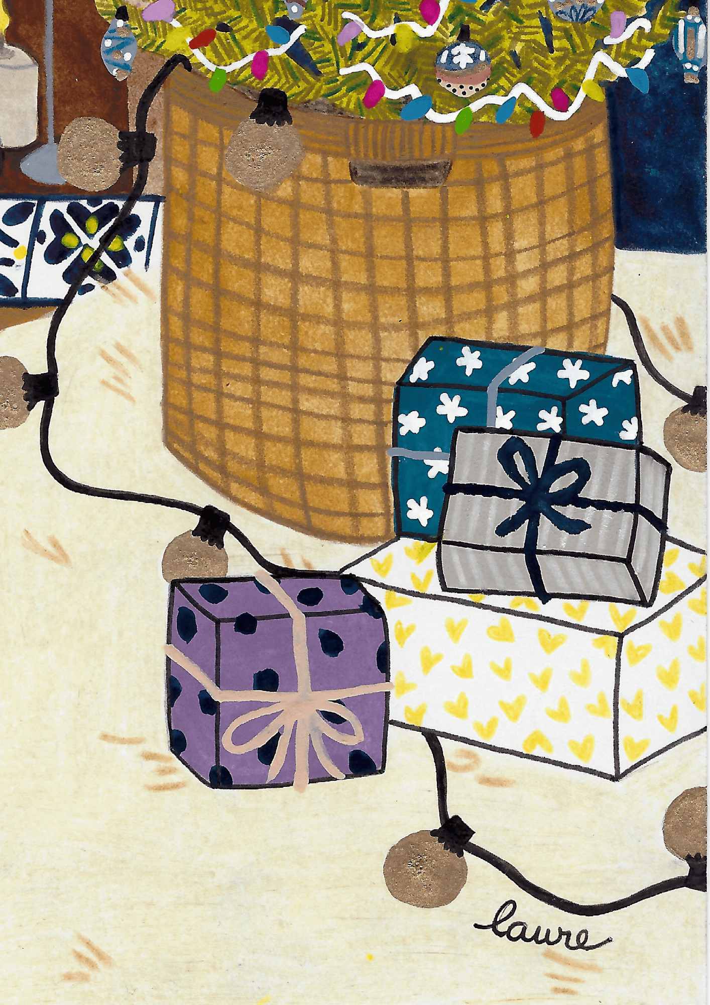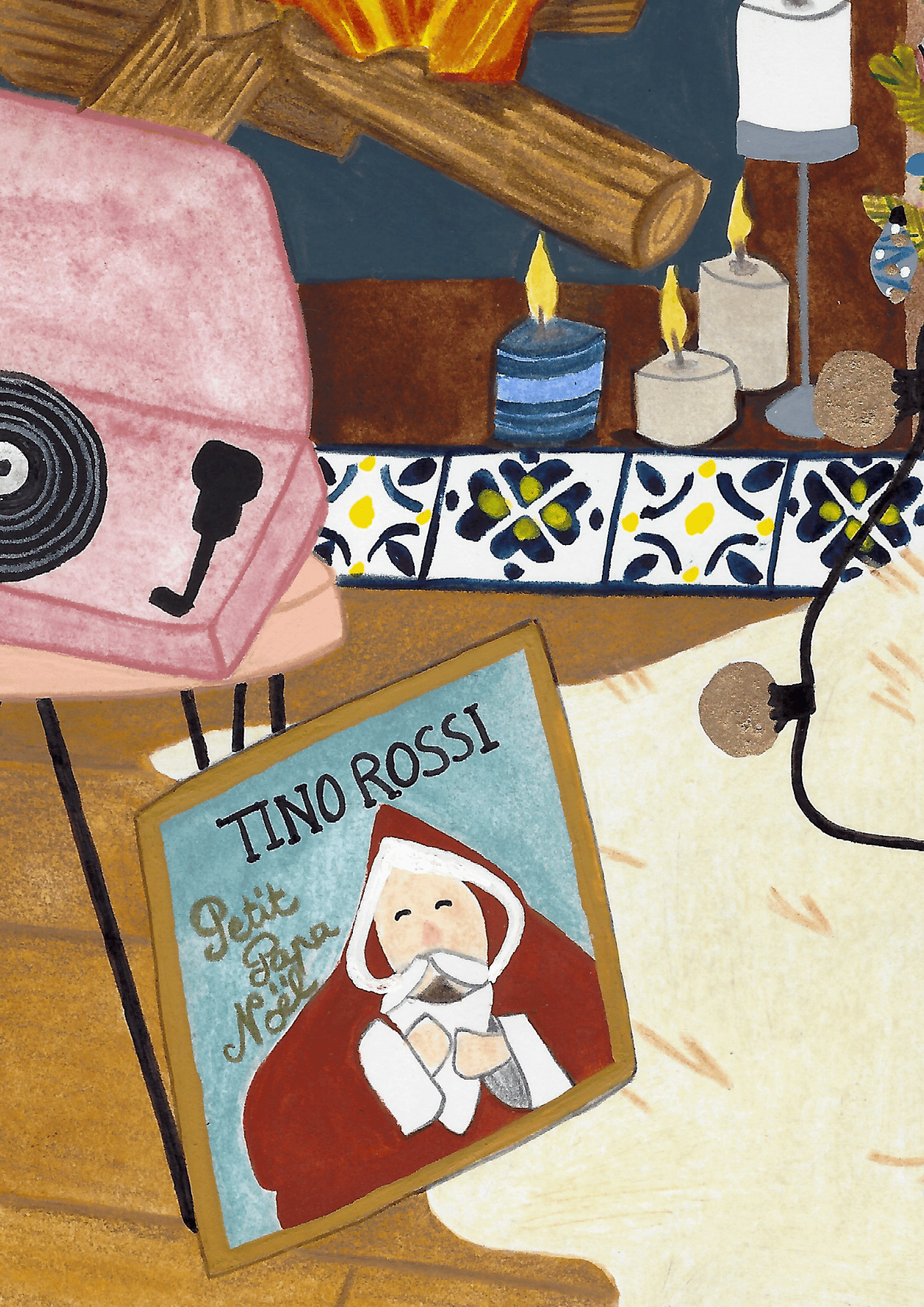 Illustration originale créée pour les fêtes de fin d'année 2022 avec plein de jolis détails, imprimée sur papier d'art 300Gr, disponible en format A5 (14,8cmx21cm) ou format A4 (21cmx29,7cm).