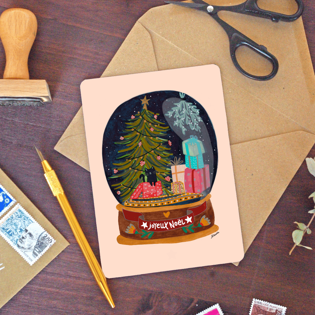Carte Joyeux Noël pour les fêtes de fin d'année et de nouvel An, imprim̩ée sur papier 300Gr, dimensions 10,8x14,8cm, coins arrondis.